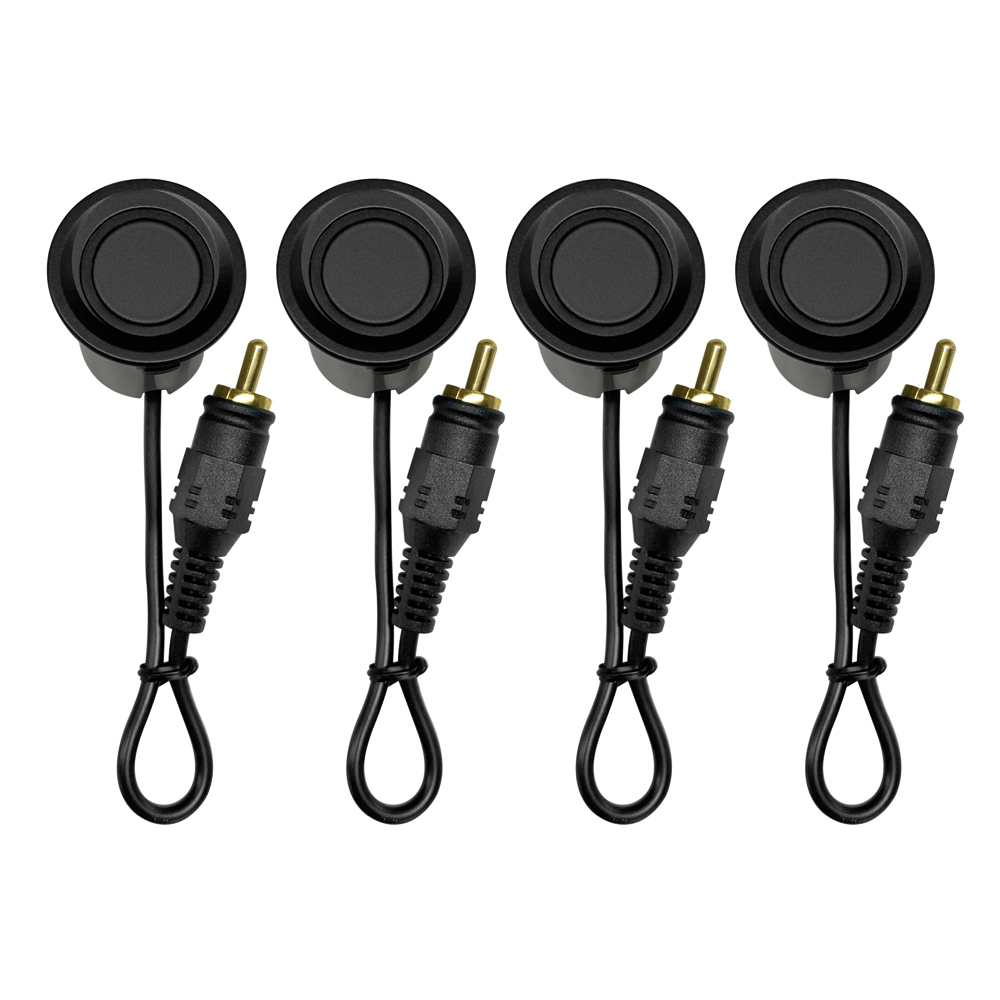 - 4 mattschwarz lackierte Ultraschallsensoren für Stoßstangenmontage von vorne oder zur Montage unter dem Fahrzeug / dem Anhänger.