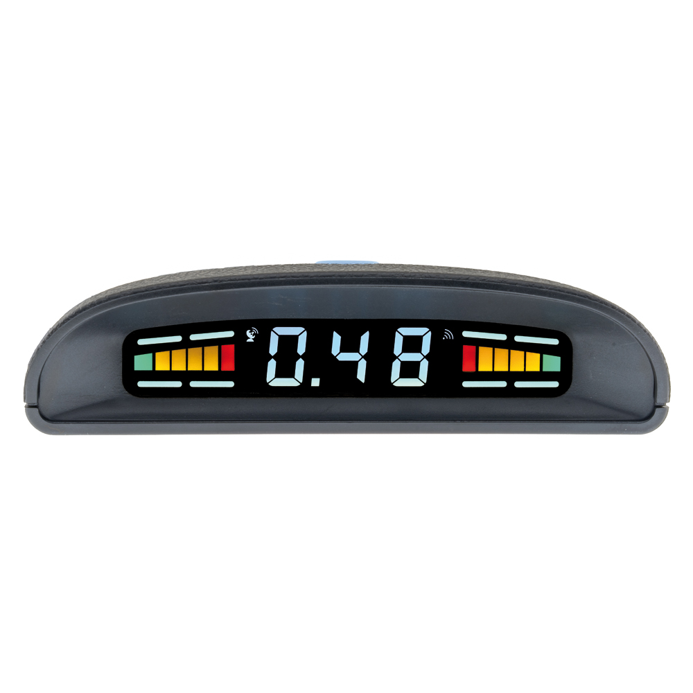 LED Display für die gemeinsame Nutzung von Heck- und Front-Sensoren. Die automatische Einschaltung der Front-Sensoren wird über GPS gesteuert. Wenn PSD400-GPS LED-Display im Fahrzeug installiert wird, entfällt der Einbau der Funklautsprecher.