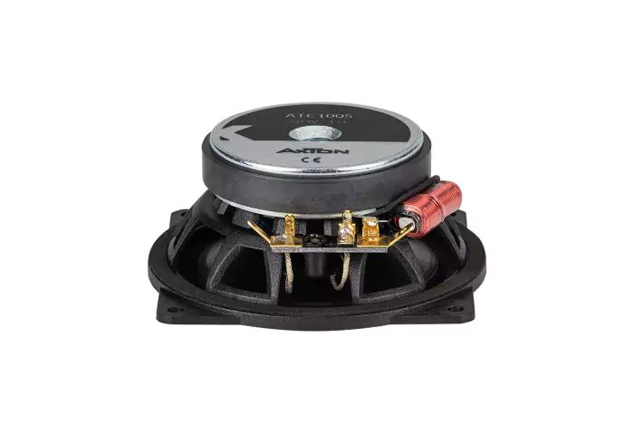 Die Tief / Mitteltöner verwenden einen speziell geformten Korb, der die nötige Stabilität bietet und durch die hinteren Öffnungen zu einer optimalen Schwingspulenbelüftung beiträgt. Dazu kommen die bewährte AXTON PP-Membran mit ihrer hervorragenden Dämpfung und ein massiver Ferritmagnet, der den Wirkungsgrad erhöht. Die progressive Aufhängung mit Nomex-Spider und widerstandsfähiger Gummisicke ist eine leichte, langlebige Einfassung, die für hohe Linearität und Genauigkeit sorgt.