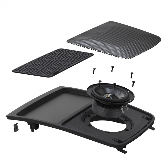 - 80 mm (3") Breitband Mitteltöner im Polyamid Gehäuse mit hochwertigem, durchlässigem Abdeckgittter und integriertem Ablagefach mit herausnehmbarem Anti-Rutschpad