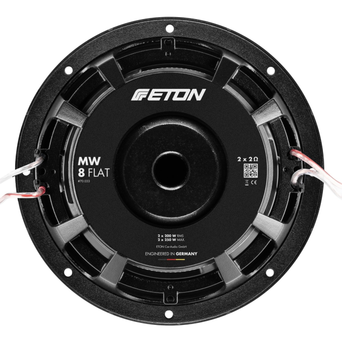 Der MW 8 FLAT ist "Engineered in Germany" und steht damit für innovative Konstruktion, hochwertige Materialien und höchste Klangqualität. So kommt beispielsweise eine extrem steife, gepresste Paðpier-Schaum-Papier Sandwichmembran zum Einsatz, die auch bei hohen Pegeln stabil arbeitet und für kontrollierte, saubere Bässe ohne Verzerrungen sorgt.