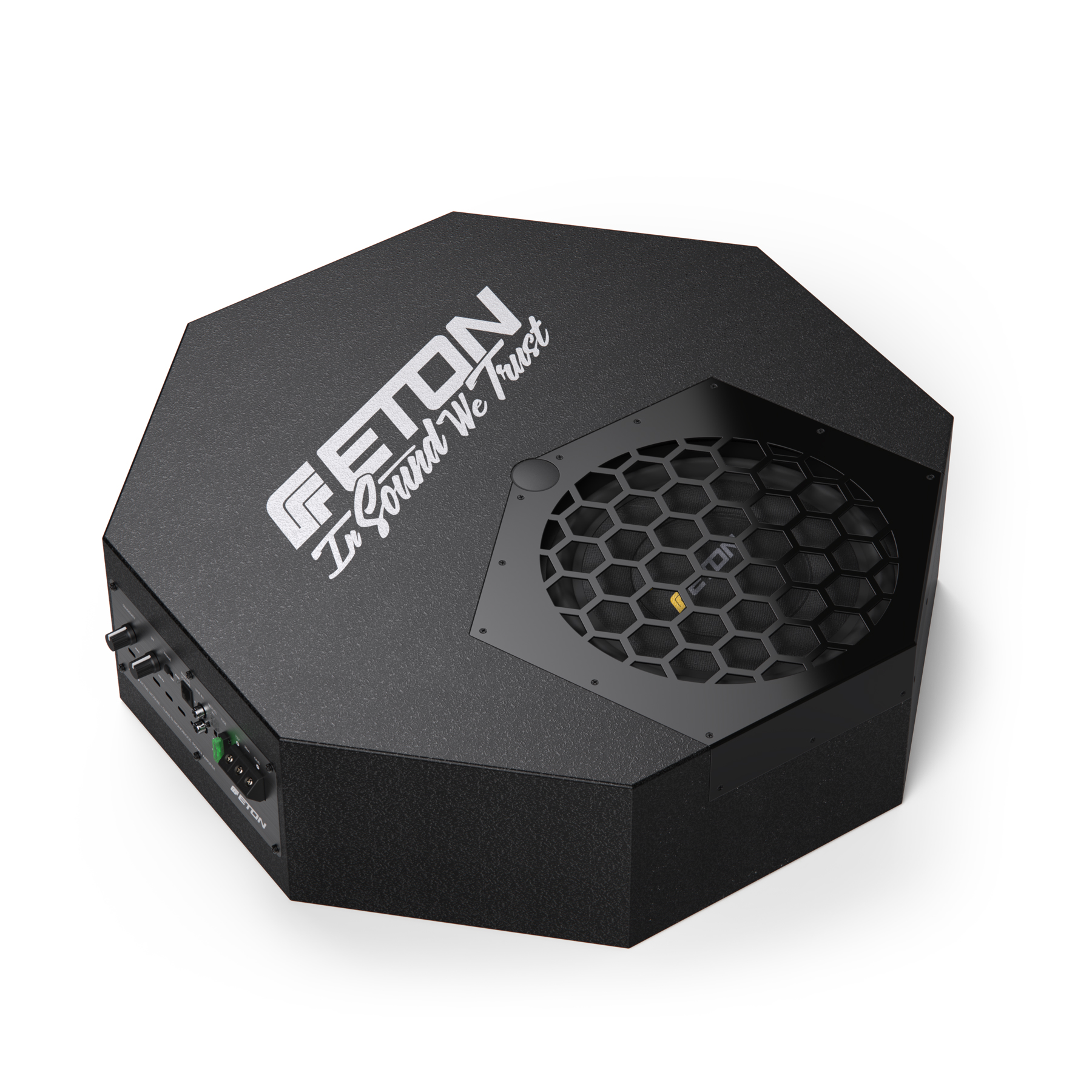 Ein massives MDF-Holzgehäuse mit einer speziell entwickelten Beschichtung, robust durch und durch. Angetrieben vom ETON AM300 Aktiv Verstärkermodul mit 300 W RMS und dem kräftigen 10" Subwoofer, ein echtes Kraftpaket mit flachen Dimensionen und dabei komplett versteckt verbaubar.