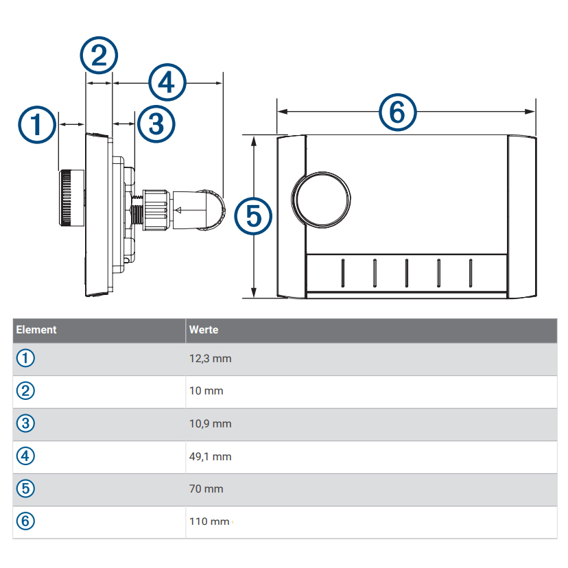 Größe: Fernbedienung, einschließlich Kabel (H x B x T): 70 x 110 x 71,4 mm