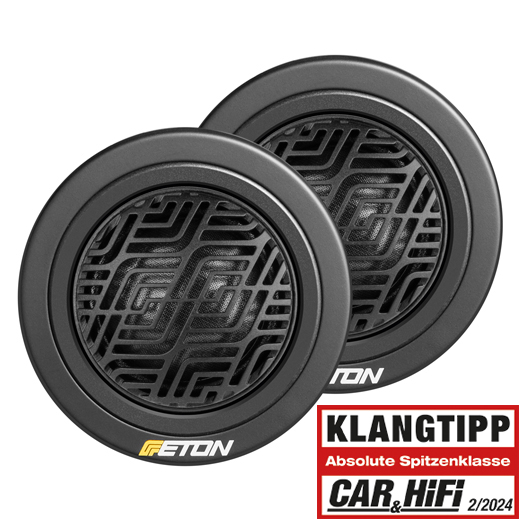 Das neu entwickelte ETON Pattern-Abdeckgitter aus hochwertigem Kunststoff wurde resonanzoptimiert und ermöglicht daher maximalen Durchlass. Die Tweeter wurden mit einem kompakten Koppelvolumen und Reflektionskompensations-Technik im Neodym-Antrieb ausgestattet.