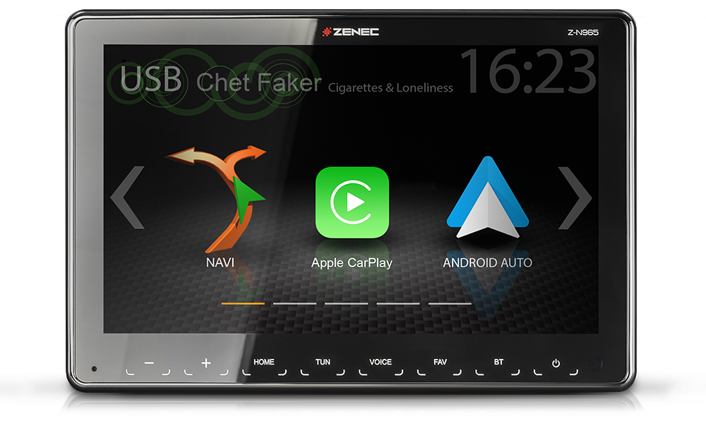 Damit sich der Z-N965 optimal ins Cockpit integriert, lassen sich der Neigungswinkel des Displays und auch die vertikale Position des Bildschirms anpassen. Der kapazitive, berührungsempfindliche 22,9 cm/9" TFT-Bildschirm mit Glasoberfläche sorgt mit seiner Bilddarstellung (1024 x 600 Pixel) für knackig scharfe, feine und brillante Bilder.