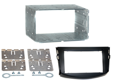 Doppel DIN Radioblende zum Einbau von Autoradio und Navigationsgeräten. Material: ABS schwarz.