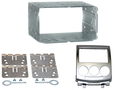 Doppel DIN Einbaurahmen zum Einbau eines Navigationssystems oder Autoradios. ABS silber mit Blechrahmen, verschiedene Radiobefestigungen, Entr. Schlüssel und Zierblende. Radioaufnahme: 182,5 x 103mm - originale Blechrahmen der Handelsgeräte mit Bauhöhe 113mm können nicht verwendet werden.