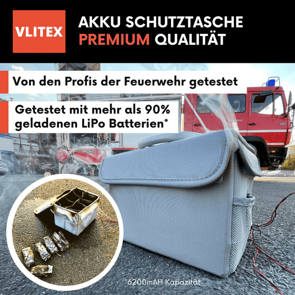 Die VLITEX Akku-Sicherheitsbox bietet eine zuverlässige und vielseitige Lösung für die Lagerung, das Laden und den Transport von Lithium-Ionen-Akkus. Hergestellt aus mehrlagigem, hochtemperaturbeständigem Glasfasergewebe, schützt die Box zuverlässig vor Flammen und Hitze. Die variable Innenaufteilung mit Glasfaser-Trennwänden verhindert das Übergreifen eines Brandes auf andere Akkus. Innovative Sicherheitsfeatures wie die Brandschott-Kabelführung und die geprüfte Isolierwirkung machen die Box zum idealen Begleiter für Drohnen, Modellautos, E-Bikes und Werkzeuge.