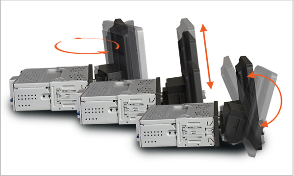 Der kapazitive, reaktionsschnelle 9"/22,9 cm Touchscreen mit Echtglasoberfläche zeigt klare, kontrastreiche Bilder und ermöglicht eine einfache, intuitive und vollkommen sichere Steuerung des Geräts. Für eine optimale Bedienung und Ablesbarkeit können Sie den Bildschirm individuell einstellen: den vertikalen Neiðgungswinkel von -20ø bis +23ø ändern, den horizontalen Neigungswinkel von - 15ø bis +15ø sowie die vertikale Displayhöhe um +37,5 mm.