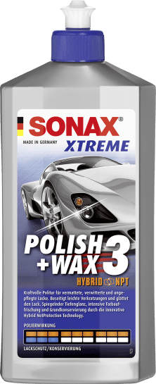 Kraftvolle Politur für vermattete, verwitterte und ungepflegte Lacke. Extrem feines Aluminiumoxid-Pulver beseitigt leichte Verkratzungen, trägt verwitterte Lackschichten ab und glättet den Lack. Spiegelnder Tiefenglanz, intensive Farbauffrischung und Grundkonservierung entstehen durch die innovative Hybrid NetProtection Technology. Mit der neuen Hybrid NPT erhält der Lack einen bisher nicht erreichten brillanten Tiefenglanz, kombiniert mit einem bemerkenswerten Wasser-Abperl-Effekt. Dazu wurden spezielle organische Substanzen mit anorganischen Komponenten zu einem stabilen, witterungsbeständigen Netzwerk verknüpft, das die Farbe des polierten Lackes optimal zur Geltung bringt. Für einen dauerhaften Schutz und einen länger anhaltenden Glanz empfiehlt SONAX eine anschließende Versiegelung mit XTREME Brilliantwax 1 oder XTREME Protect + Shine.
